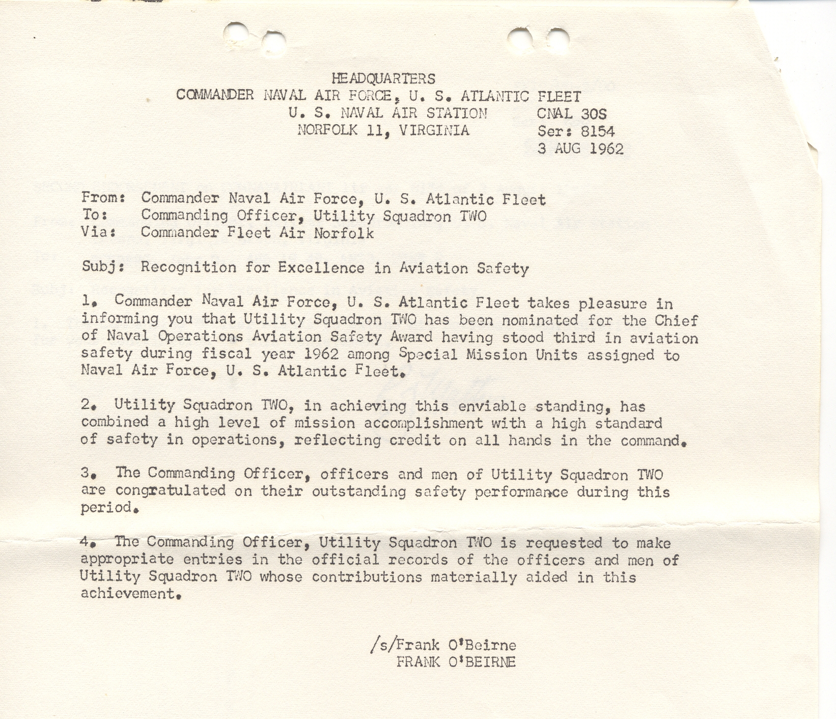 VC-2 Blue Falcons received a COMNAVAIRLANT aviation safety